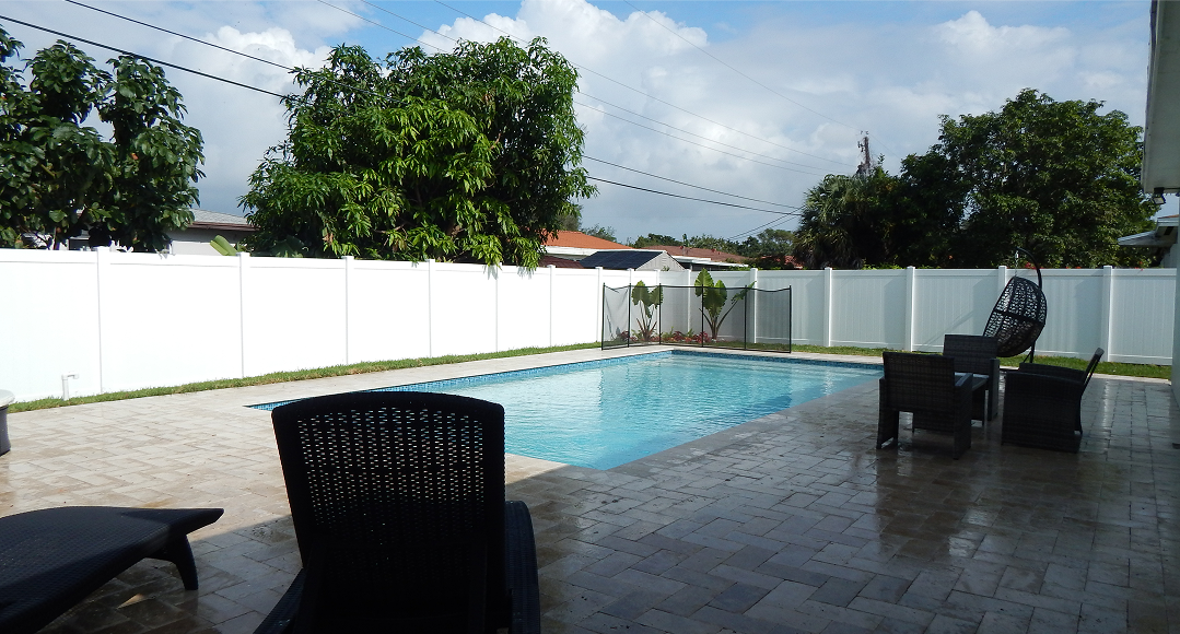 This full-scale outdoor transformation included a new custom pool, premium pavers, elegant landscaping, and stylish outdoor furniture, along with custom lighting, a pool fence, and a sprinkler system with a well for effortless upkeep.